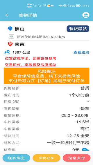 4、每个货源订单都提供货主联系电话,点击即可直接联系沟通。