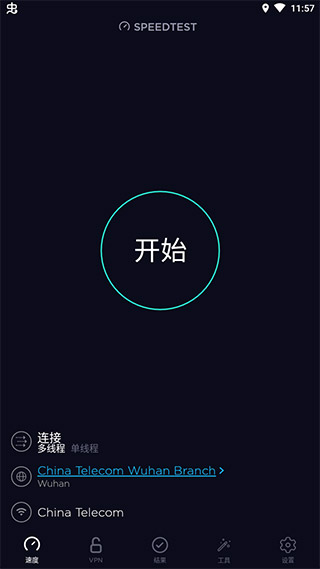 2、启动Speedtest App。Speedtest会自动选择一个离你最近的服务器。