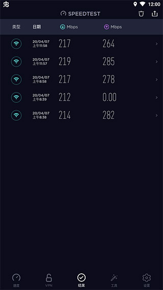 6、历史记录:记录已测试的测速报告
