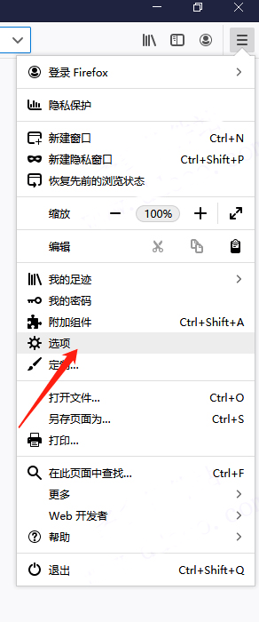 1、首先打开软件,点击右上角选项,找到浏览器设置;