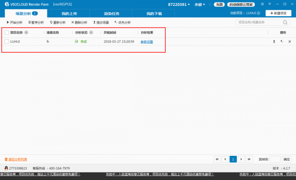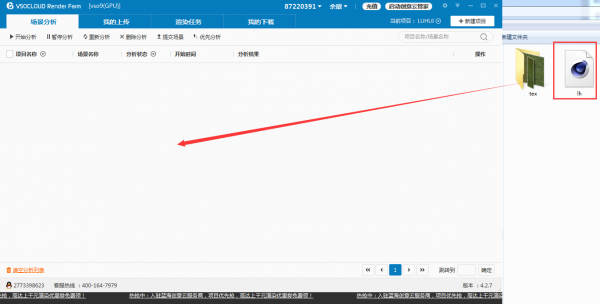 将已经制作完成的C4D文件左键直接拖入蓝海创意云渲染客户端,即可进入场景分析阶段。