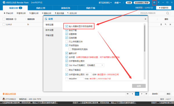 注:只有当使用GPU渲染器的需要勾【启用GPU渲染】,如octane或是redshift;若是Arnold或是默认CPU渲染器则无需勾上。其中,VSO9是GPU渲染;VSO12是CPU渲染。