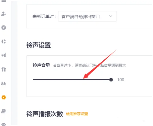 5、如图刷新一下后,就可以找到“铃声设置”这里有一个声音轴,调节大小;