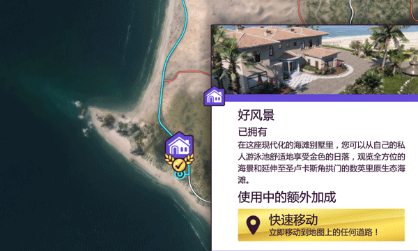 2、美丽别墅,游戏内第一个解锁的,免费。奖励是 “电台会播放技术歌曲” 有助于快速升级并获取车辆精通点数。