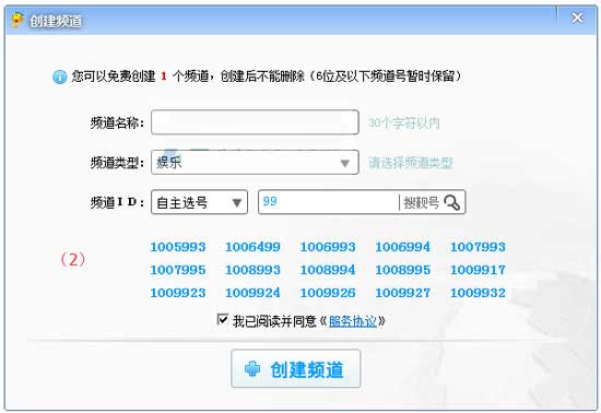 2、在弹出窗口(1)填写频道信息