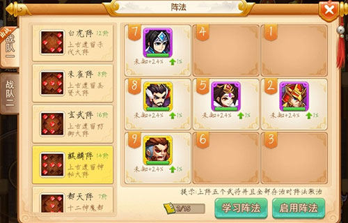 麒麟阵的效果是平摊伤害,每回合结束时回复比例血量,前期有一定的优势。