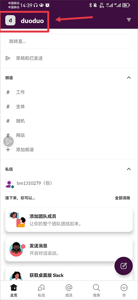 slack安卓版app如何加入新的工作区