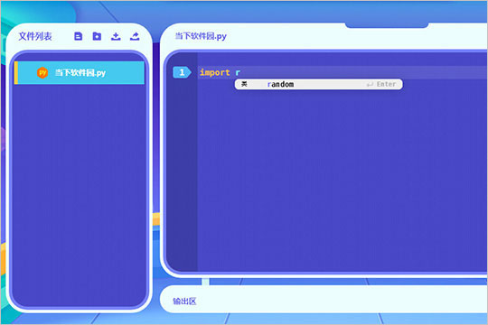 5、成功新建代码文件,在点击此代码文件,在右方的输入框中输入你想要运行的编程代码;很多同学在刚开始编程时可能会遇到忘记代码的情况,而猿编程软件拥有的代码提示功能,就可以帮助用户解决这个问题,用户只需输入开头代码,即可弹出相应的提示,这时候只需点击你想要的那个代码即可;