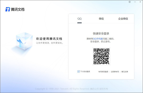 2、成功安装,打开软件界面如下,支持qq、微信和企业微信登陆;