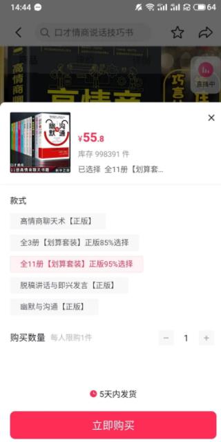 直播间货源非常简单,直接从精选联盟找,零成本、零库存,赚佣金。 许多书都是白菜价,引流效果非常好。 用户会想,这么便宜,岂不是要亏本? 1、卖家为了提高销量,让更多人帮忙卖货,会低价冲销量,这是常规操作。 2、进入产品页面,会发现不同价格的套餐,低价是引流款,高价是利润款,只要购买的人足够多,利润款足以覆盖引流款的损失,还能有盈余。 ![]() ![]()